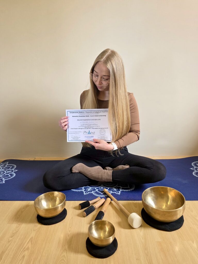 2025-ben Tibeti Hangtál és Hangmasszázs operátor – hangrezgéses energetikai kezelő lettem és azóta szeretettel használom a tálak megnyugtató hangjait a jógaóráimon- a gyerekek imádják. 🙂